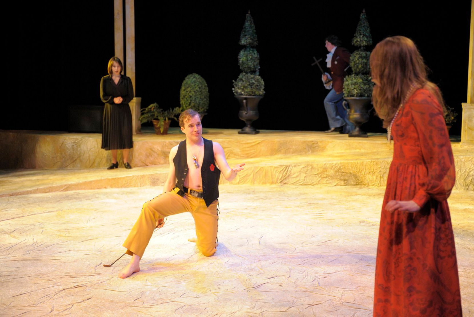 “Andrew Wade’s nasally prudish, stick-in-the-mud Malvolio is one for the ages. He is a suit among amongst a stage of puffy shirts, flared pants, and velvet jackets. He is the one character who just doesn’t get it… He is the guy you want to give a ginch pole to in the schoolyard, but at the same time you just want to hug him and say everything is going to be alright. Wade turns him into the most sympathetic prig I have ever seen…
