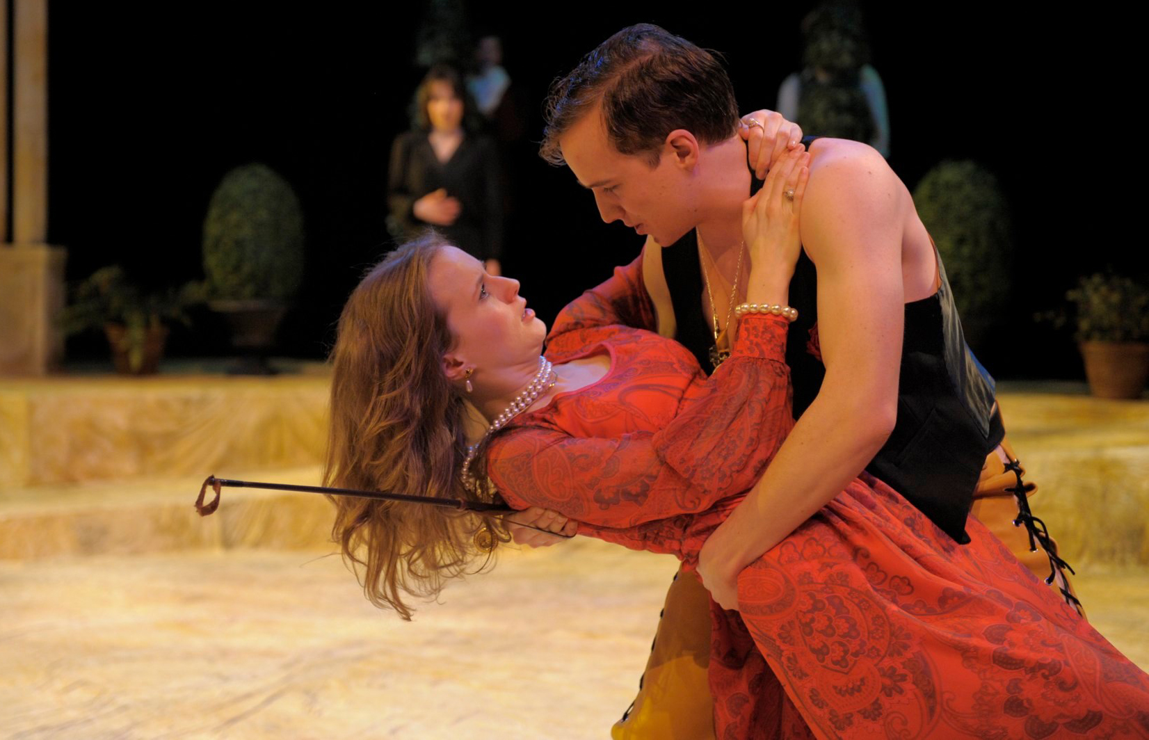 “As the boozing, cavorting (and sometimes dope-smoking) Sir Toby, Dayan exhibits welcome comic chops. He captures the character’s blend of the dissolute and the fun-loving, making him the irresistible rascal he needs to be. And Wade does well as Malvolio, who’s Sir Toby’s opposite. The actor carried himself with a certain stiffness in posture and gesture — he provides the “dignity” that must be present, in order for us to enjoy his fall.”