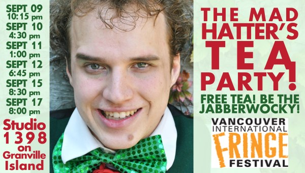 So, we came to tonight, to the first ever performance of The Mad Hatter’s Tea Party. A show designed to be an experiment with everything I’ve ever wanted to put into a show – audience interaction, a fight sequence, sing-along songs, an improvised song, friendly semi-forcing-the-audience-to-be-involved-in-the-show… silliness abounds! And all with a heart to it. A core.