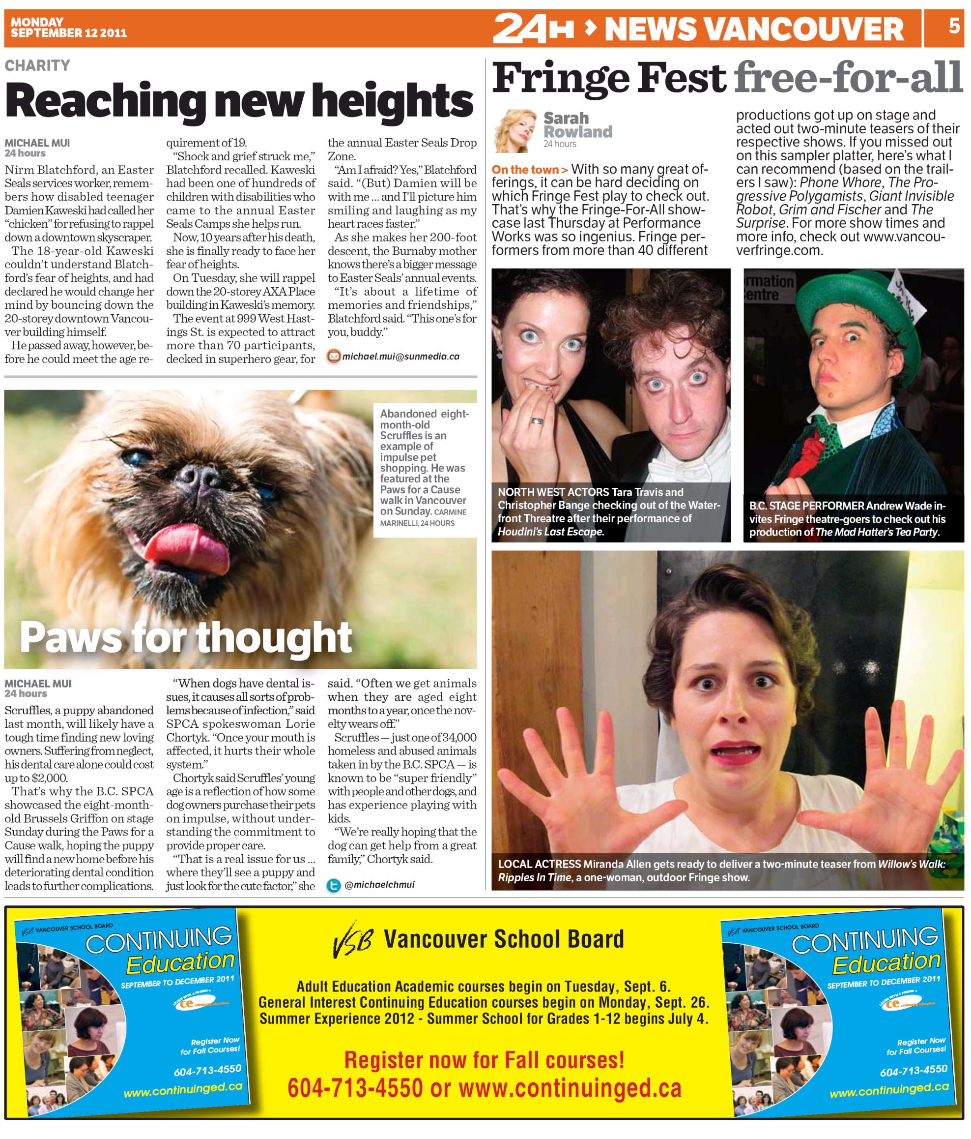 – Volunteers LOVED the show, but audiences were small, otherwise. I need to up my advertising/flyering, especially in the first few days of the festival.