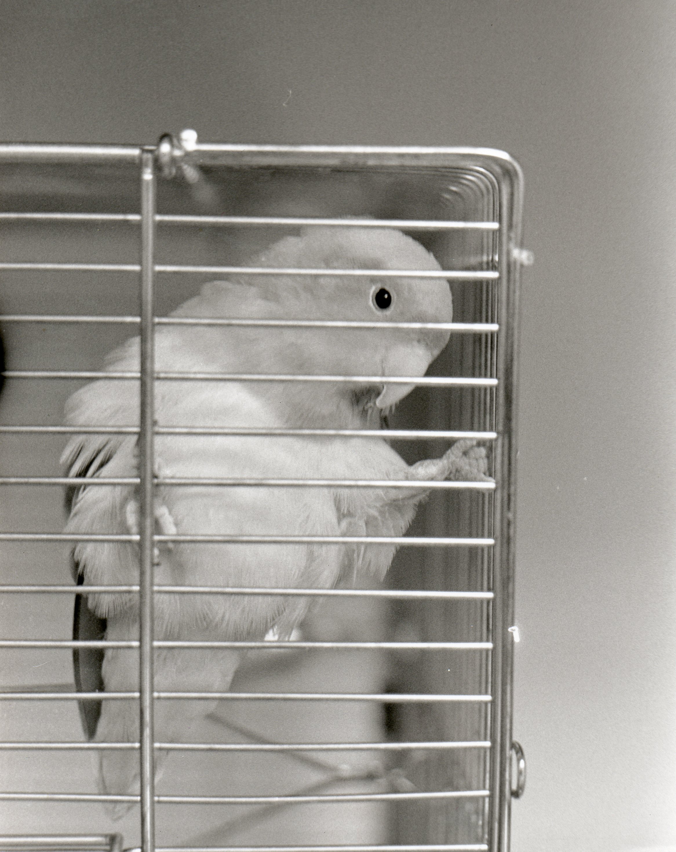 I was always the one to not-so-jokingly suggest letting the bird go free to fly about and inevitably get eaten by a nearby cat or raccoon. The usefulness of this bird escaped me. Heck, you couldn’t even hold the darn thing or have it perch on your finger unless you were VERY careful and a little lucky, or didn’t mind painful bites from a needlesharp beak. And the bird loved perching up on people’s shoulders… and then attacking their glasses. I was always afraid he would go after the mole on the back of my neck.