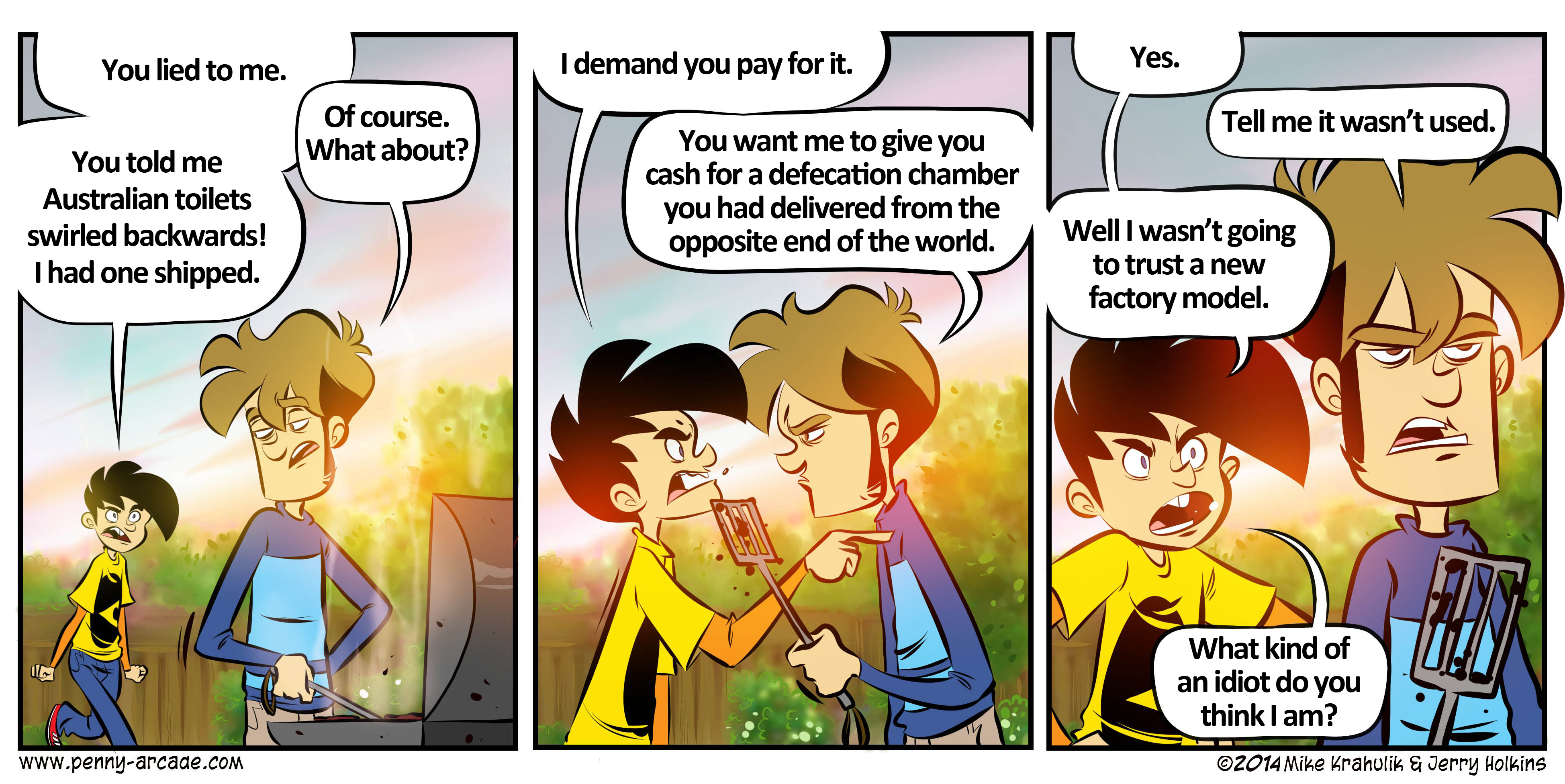 And for those of you who have read to the end, here’s a bonus entry I made into a penny arcade comic contest. Their art, my words. Had to be on an Australian theme: